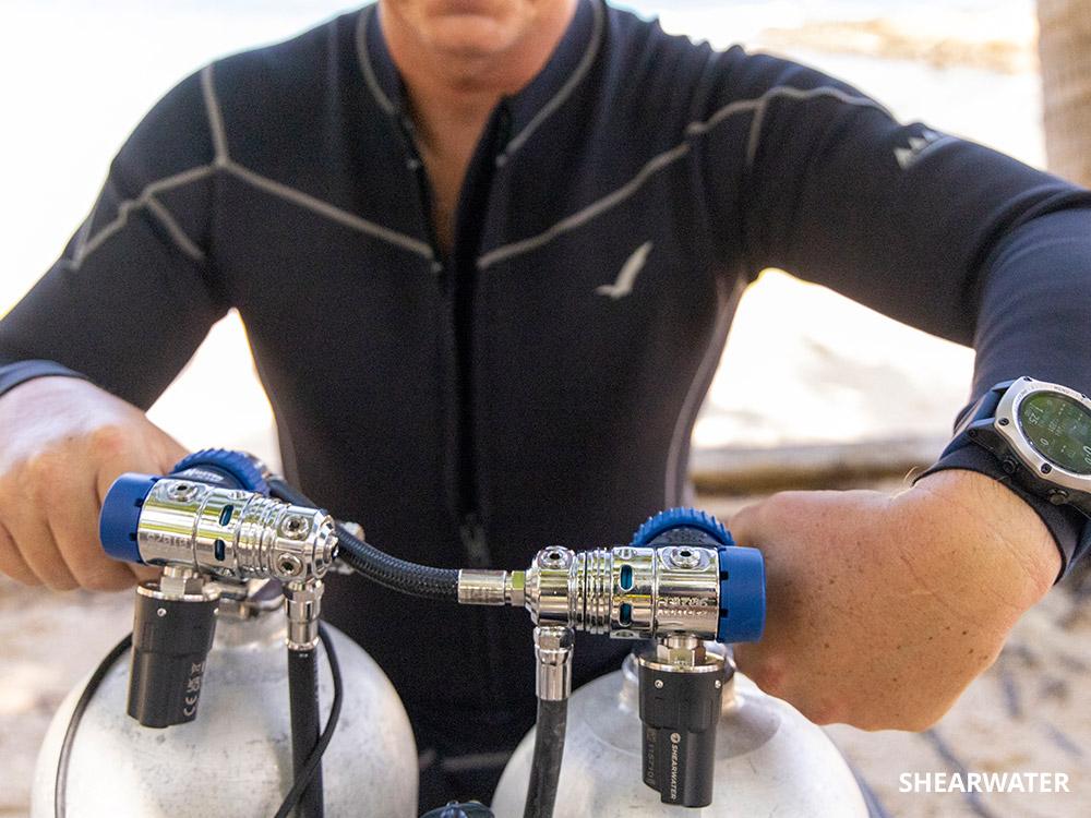 diver instructor teaching sidemount